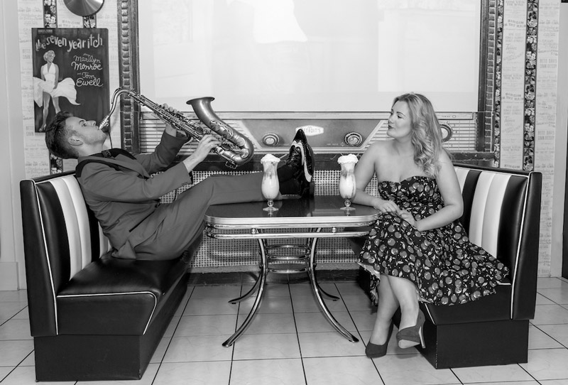Our passionate musicians perform everything from Adele's "Rolling In The Deep" to The Temptations' "Build Me Up Buttercup" and a whole set list filled with classic rock and top 40 pop songs that'll keep your event filled with high energy. Bringing a youthful touch to these classic songs, our marvellous live music duo can perform up to two one hour sets that will be filled with up to thirty five songs. Versatile performers, our sax player and female vocalist can adapt their high energy and captivating musical experience to fit within the realm of most theme guidelines and a variety of styles, providing a few customization options.