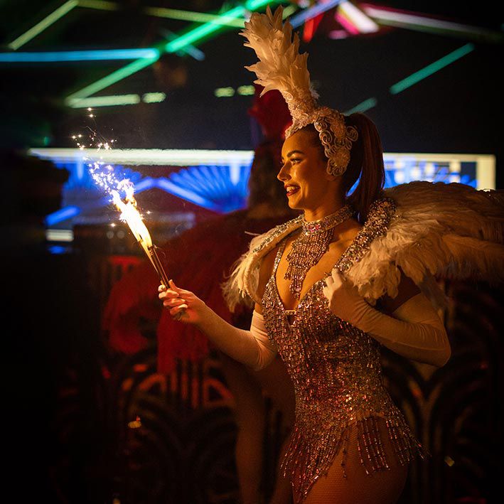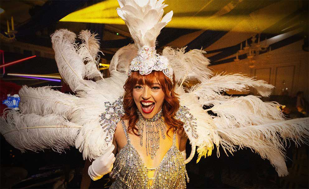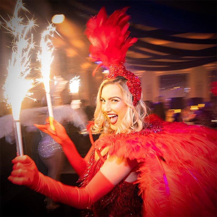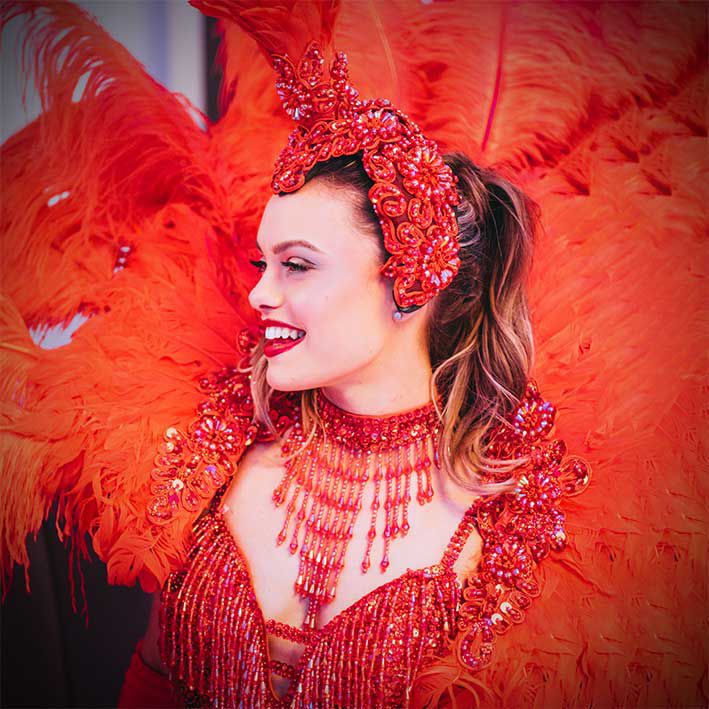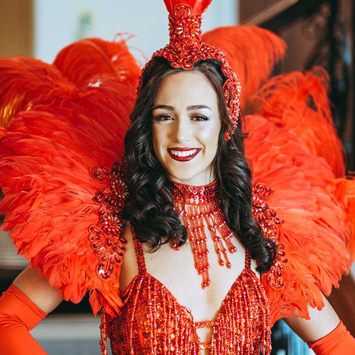 Dressed in stunning, high-end costumes featuring sequins, tassels and feather headpieces, our Vegas showgirls will impress your guests from the moment they set foot in the door of your event.