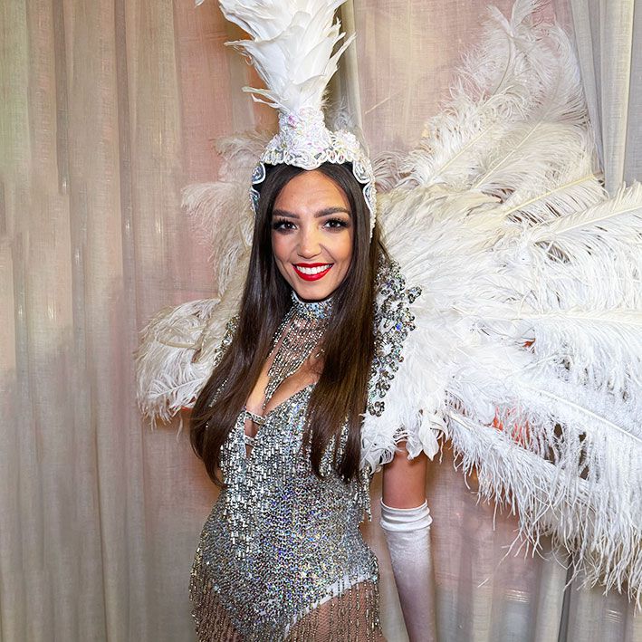 Our bubbly showgirls love to pose for photos, and your guests will love the opportunity to take selfies with them to post online.