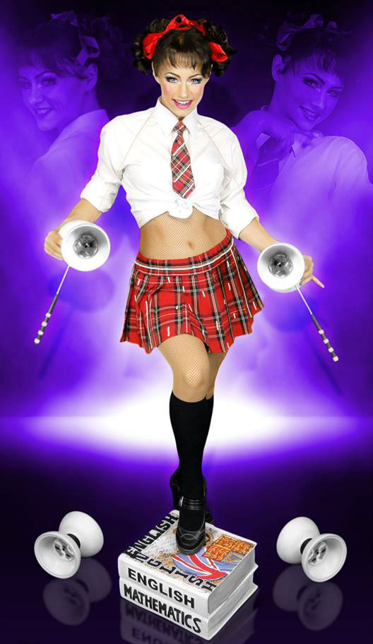Providing unique high energy shows, Diabolo performer Maria will blow guests away with her fabulous School Girl themed show, high speed manipulation and incredible juggling skills.