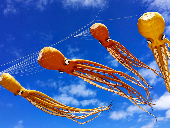 You can choose from a range of manta ray, octopuses, whales, exotic fish and more. In the right conditions, these enormous magnificent and vibrant sea themed kites will gently sway in the sky and amaze everyone down below. With giant kites like many people have never seen before, they have whales that can reach 30 meters and a large octopus that is 65 meters long. These a guaranteed to become a focal point of any event.