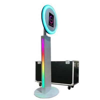 Enjoy a sleek, self-service photo station setup with lighting, table and props—perfect for high-traffic events and modern celebrations!