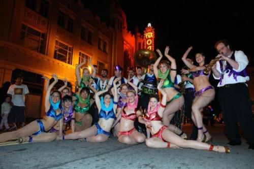 " Leaders on the scantily clad front, the [dance troupe] are a samba-based troupe who shake it to anything from bossa nova to Klezmer music. "