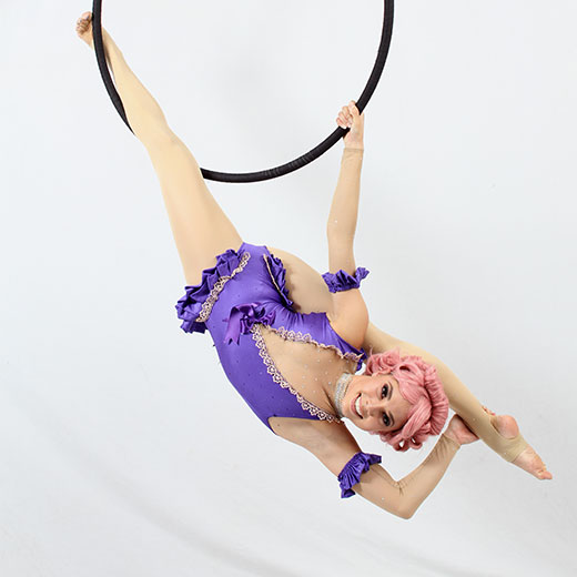 Specialising in aerial entertainment, she's able to provide both silk and hoop performances