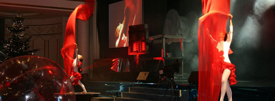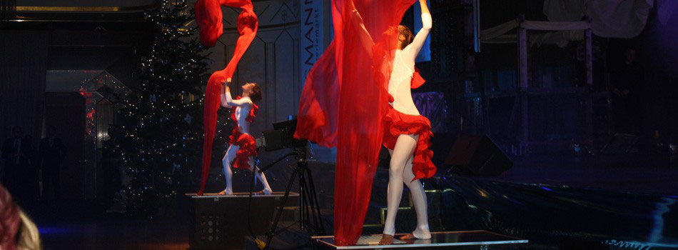 The show is highly adaptable; the silks are available in an array of different colours to suit any theme and the dancers costumes can also be customised with matching or contrasting colours.