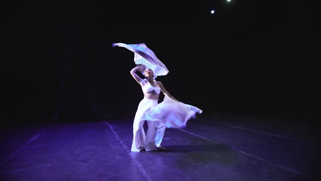 Las Vegas-based performance artist enchants audiences with elegant silk fan dance performances, appearing regularly at top casinos