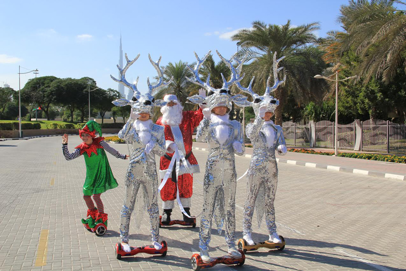 Unique silver reindeer characters will glide through your venue on top of their hoverboards
