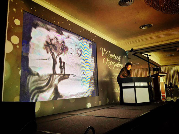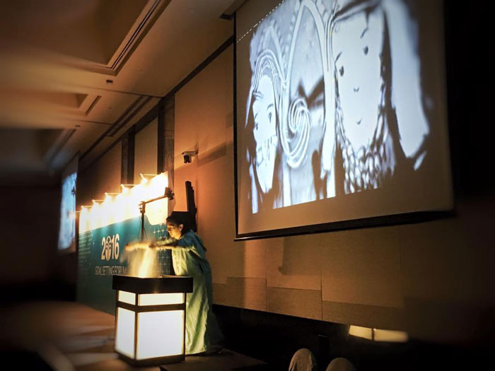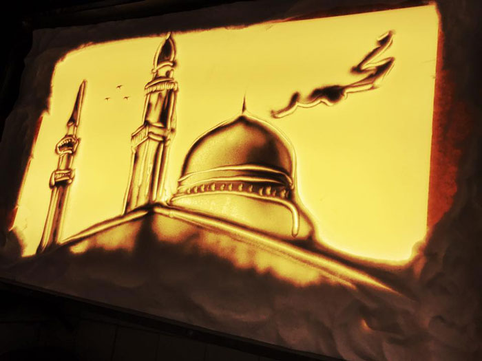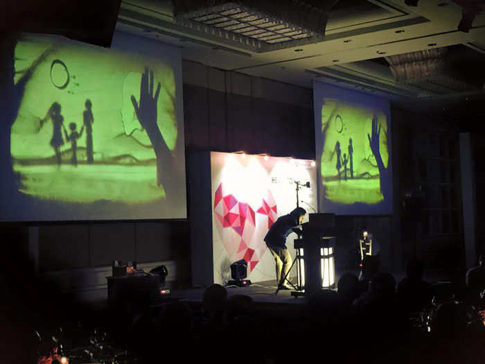 As the sand animation takes place on a small light-up podium, it is generally projected onto a large screen for the audience to observe. The live event artists can also assist in filming the process and every aspect is customisable from the podium to screen surroundings.