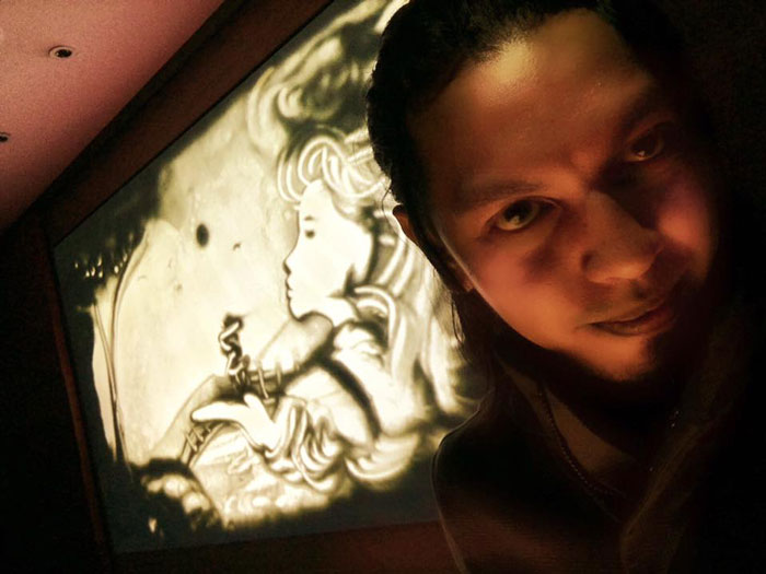 Our Singapore Sand Artist has developed his techniques to the highest possible level. During his performances, the sand artist creates fascinating and continuously evolving stories using nothing but sand. With clever manipulations and expertly executed gestures, he can swoop from a cityscape to a blank canvas and into a corporate logo.