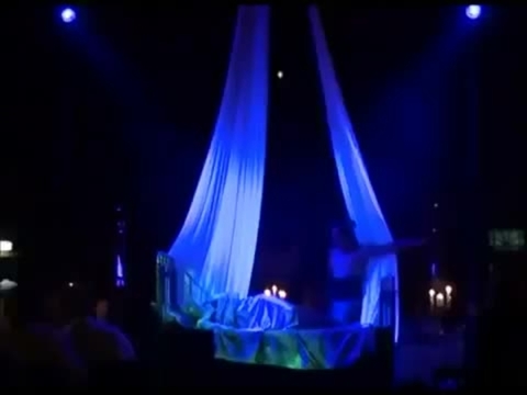 " Open mouthed, the spectators witnessed in amazement the cloth acrobatics of the show. The duo performed with intoxicating sensuality, and both performers beautifully and gracefully soared above the bed. At the end, a feathery dream of white and blue floated to the ground – breathtaking! "