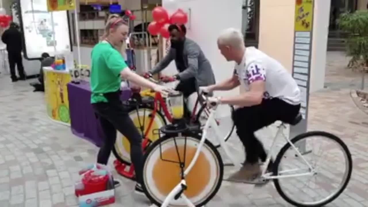 The fabulous smoothies are made using the energy generated by pedalling and are available to hire for both adults and children