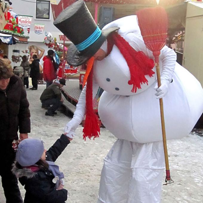 Available to hire as either dedicated guest greeters or as a roaming act, our playful snowmen will prepare fun and exciting demonstrations applying their unique take on walkabout entertainment and imaginative movements. Our stilt entertainers will make sure guests are participating in the fun and always laughing as our entertainers come prepared to please large groups with their year round holiday cheer. Fascinating and sweet, these larger than life snowmen will captivate everyone in attendance with their expressive characteristics, reeling in guests from start to finish as they march through the crowd with fun games.