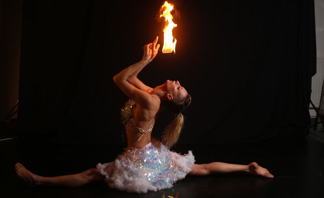 In addition to aerial, they specialise in fire performances featuring dragon staff, palms and fans and can be booked for both for added spectacle