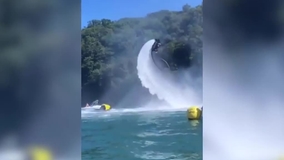 Devon-based flyboard specialist performs exciting shows executing flips, backflips and dolphin dives with a water jetpack attached to his feet