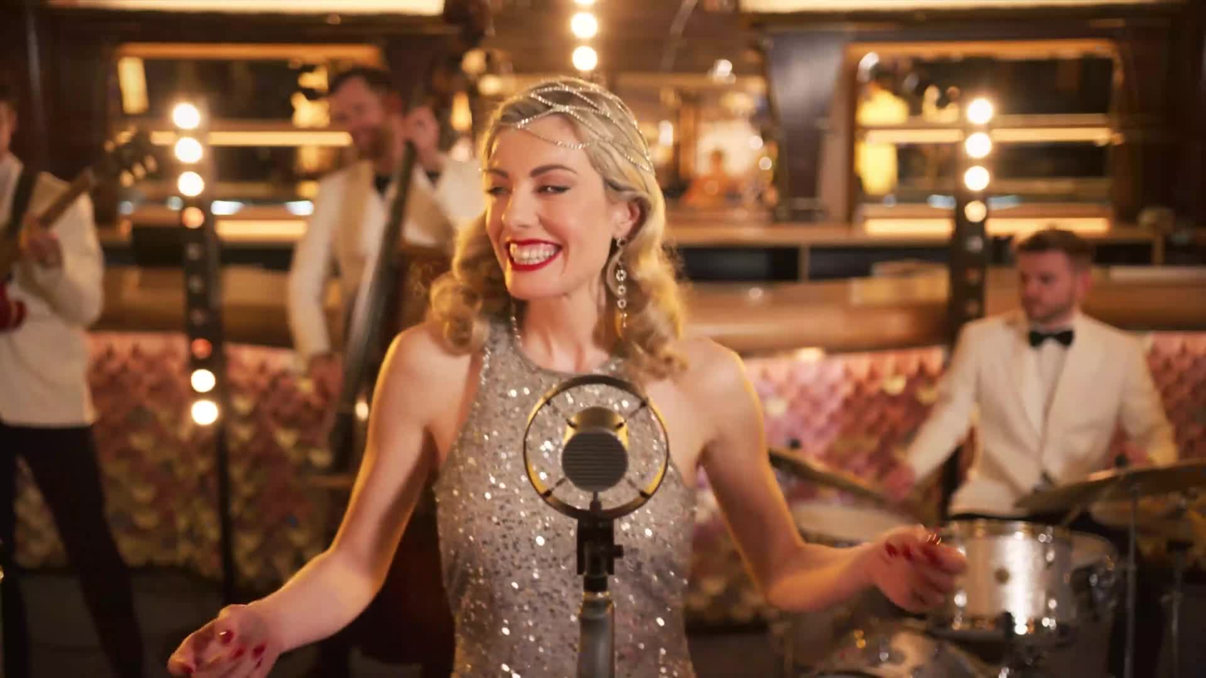 With a number of stunning vintage jazz act costumes, our vintage-style singer is the perfect act for any 1940s, 1930s, or 1920s-themed entertainment. Sashaying behind her old-school mic in a beaded gown, dark red lipstick and waved hair, her vintage Hollywood starlet look sets the perfect atmosphere for a night of old-school glamour.