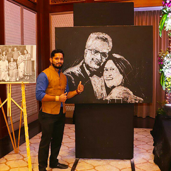 Our Speed Glitter Painter India is not only a talented speed painter offering unique multiple live art combinations but also one of India’s best and only glitter painters. Years of experience as a freelance artist has equipped him with skills to create fascinating live art entertainment.
