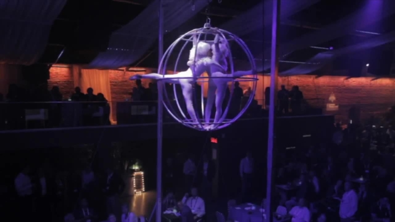 Performing from inside a sphere apparatus, these event aerialists create an enchanting atmosphere that is a delight to watch and guaranteed to add a stunning addition to every event.