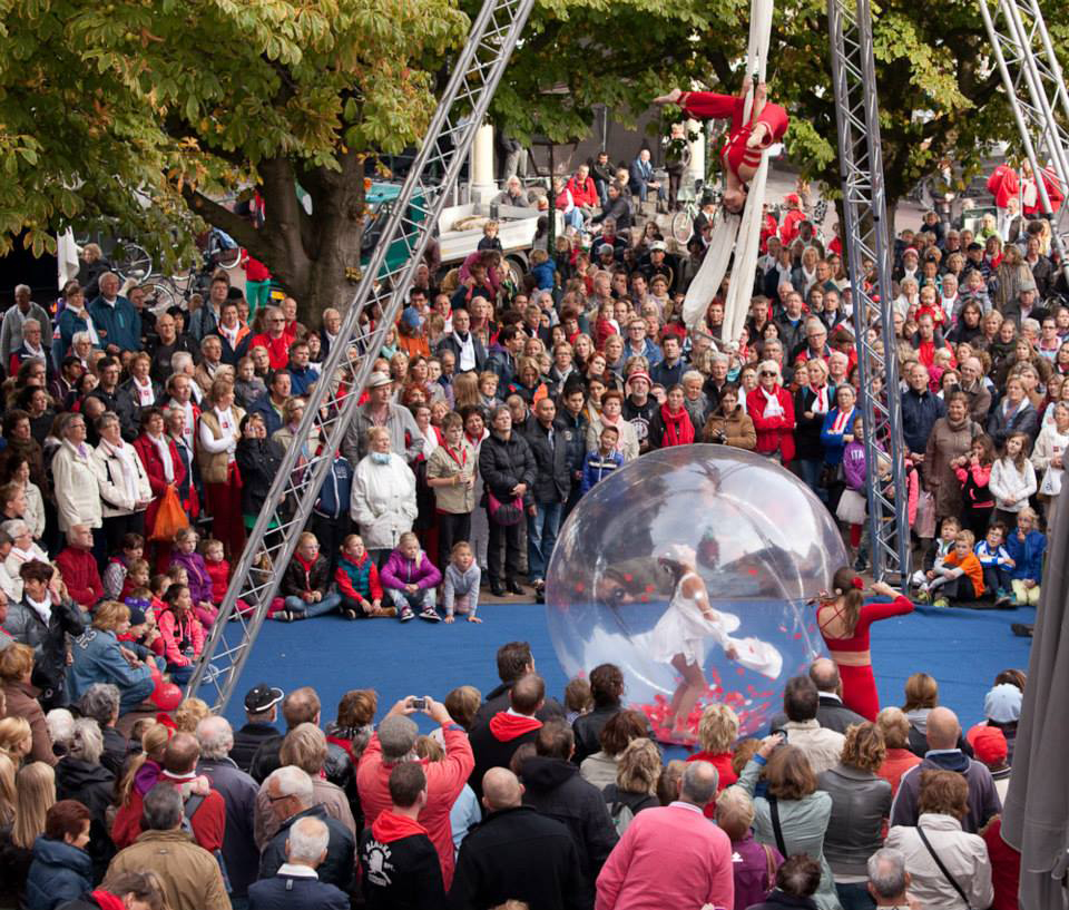 Stage show includes a trio of bubble artist, aerialist and violinist