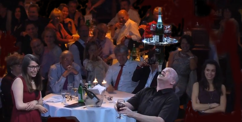 Members of the audience are invited on stage to aid him in his balancing of an upturned wine bottle, silver tray and multiple wine glasses filled with red wine. A fantastic audience participation performance for a truly exciting and engaging act, guests will delight in our stage show juggler’s feats of balancing!