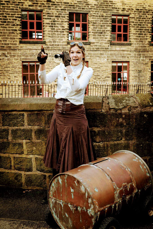 Are you looking for interactive entertainment for the whole family? Then this steampunk act can be the perfect choice for your event. This is a fully interactive act performed by three steampunk walkabout characters that will encourage audiences to participate and learn things about the environment by doing scientific research.