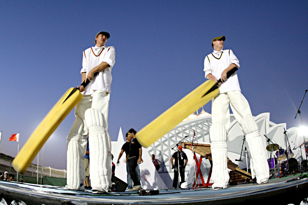 Originally commissioned for the Scarborough Cricket Festival, these cricket themed stilt walkers have been entertaining audiences around the world for well over a decade. Dressed in all their cricket attire complete with over sized bats they demonstrate their unparalleled cricketing skills with a good dose of humour, quick wit and charm thrown in for good measure!