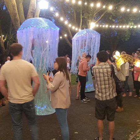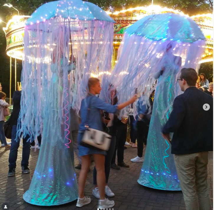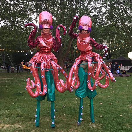 If you have a particular special event with an idea, colour or theme in mind for ground or stilt costumes, they can adapt their style to fit the occasion. Their stilt designs are innovative, imaginative and unique!