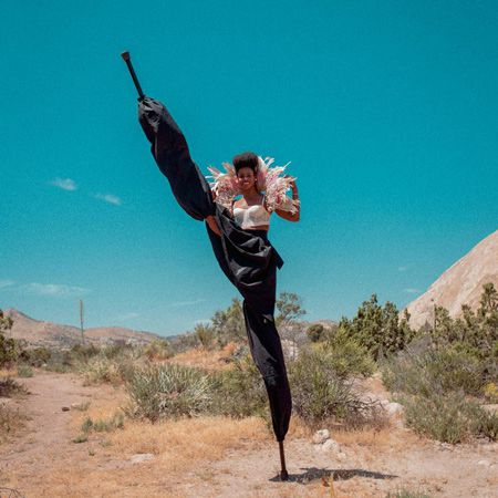 This California-based Stilt Walker elevates this cirque skill with her background in dance and gymnastics and can do dramatic kicks and tricks