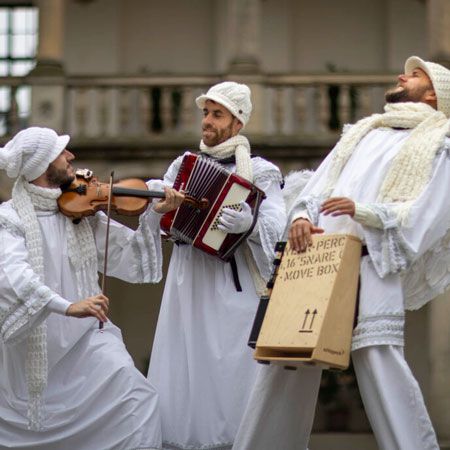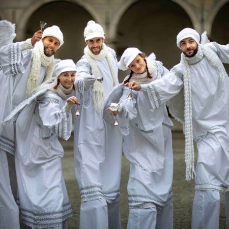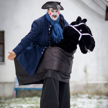 Their repertoire of characters includes everything from a scarecrow, clowns with giant hands and the Grim Reaper to circus acts, a bride and a groom