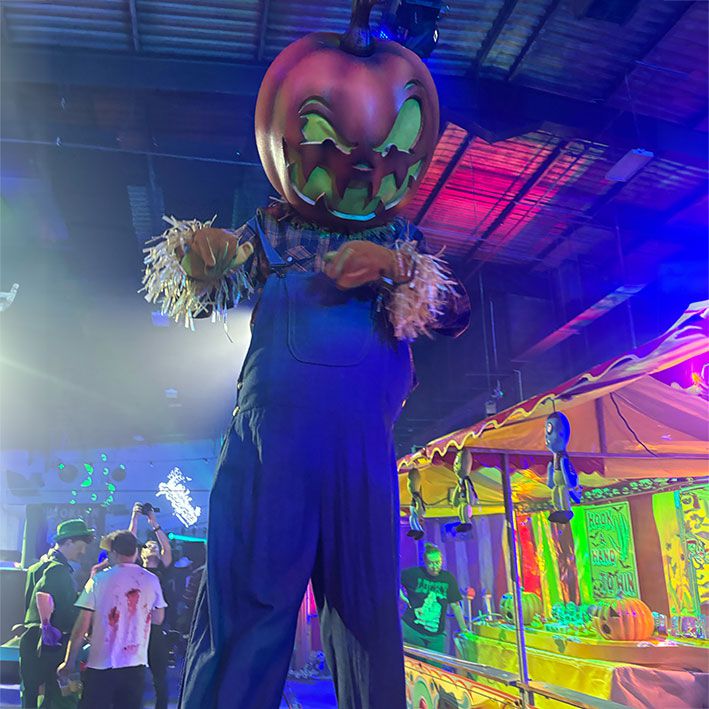 Towering over guests at an impressive height, this cheeky pumpkin will interact with everyone he comes into contact with, waving, high fiving, and posing for photos.