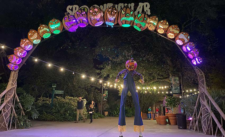 Our lively Halloween pumpkin on stilts is a perfect addition to any family-friendly Halloween event.