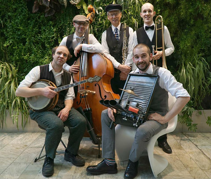 Vintage-style jazz band that delivers energetic washboard-driven music inspired by the 1920s