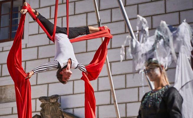 The ensemble showcases a wide range of talents, including aerial performances, extravagant stilt acts, acrobatics, juggling and more
