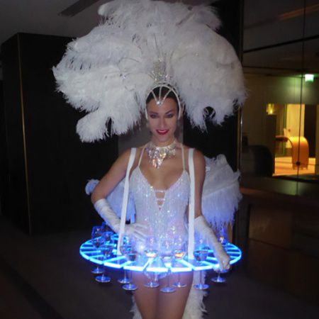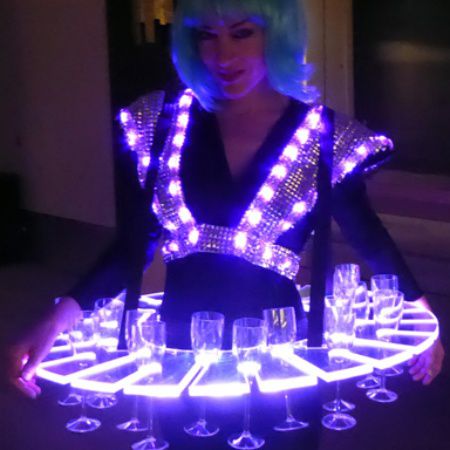 Combine our Strolling LED Tables with our gorgeous Champagne Dress Hostesses to further enhance the performance. Contact us today for more information on booking one-of-a-kind catering services.