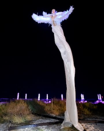 Available as soloists or a duo, these aerial performers interact beautifully with guests and pair perfectly with ground-based walkabout acts