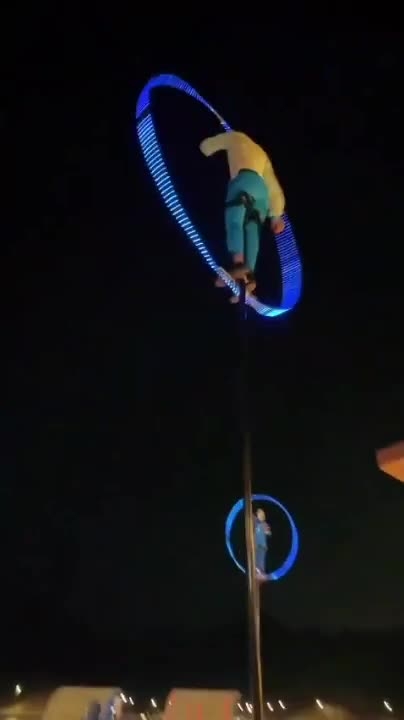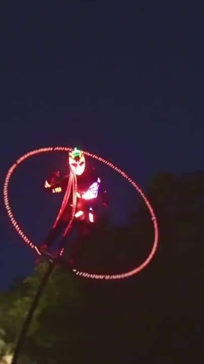 These circus sway pole performers also offer LED acts featuring glowing rings, illuminated costumes, and LED wings to light up evening events