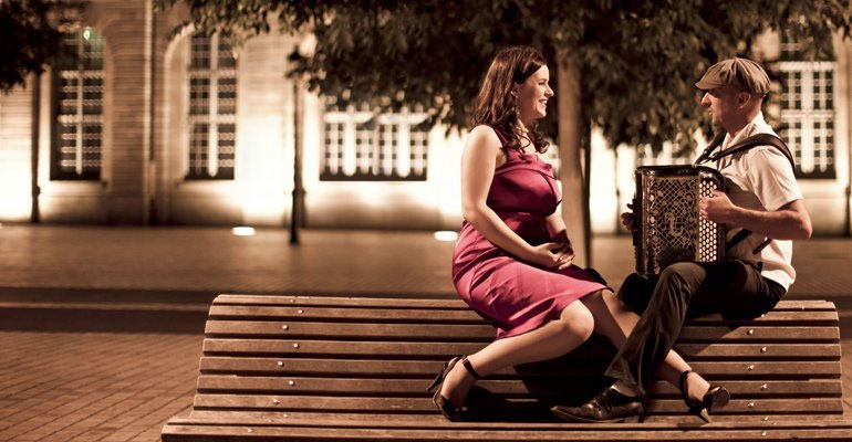 This Bordeaux based Swing Jazz duo mixes glamorous cabarets and music halls, with the French song taverns and cafés-concerts. This talented duo consists of experienced musicians Cecile (singer and violinist) and Serge (pianist, accordion and trumpet player).