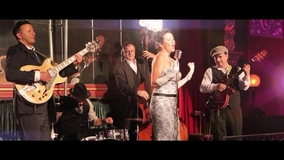 The core group of musicians that make up this swing/jazz act includes a glamorous female singer, a guitarist and a double bassist, but guest musicians are available on request to include violin, rhythm guitar, bass, drums and trumpet.