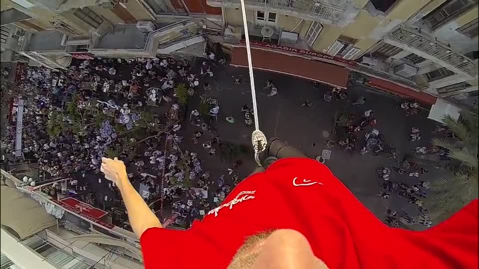Can be themed and tailored and take place wherever he is able to tie his rope, shopping centres, between buildings, anywhere