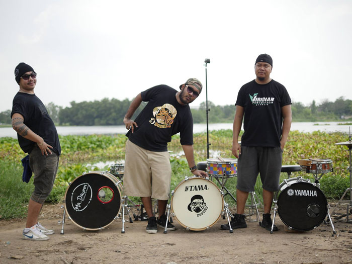 The Thailand Drumming Trio is a collective of extremely talented percussionist from Bangkok. Taking their beats to the streets and stages in and around Thailand, the three drummers perform a wide array of music styles that mainly features their own compositions and rhythmical patterns. The multi-disciplined drumming group performs everything from perfectly syncopated rudimentals exactly in time with each other, just like watching a three-way mirror, right through to extremely elaborate pattern and drum solos.