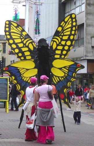 The collection features The Adonis Blue, The Chalk Blue, The Swallowtail, the Red admiral, The Marble Veined white, the Purple Emperor, The Oak blue, and the Green Triangle. The Butterflies spread the philosophy that no-one has to do things... it is perfectly adequate to simply float about being beautiful perhaps sipping some nectar. They are fully mobile and, with their prehensile probosci and signal emitting antennae, gently interact with flora and fauna, civic flower displays, children and adults.