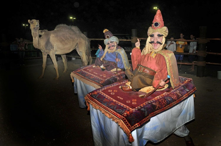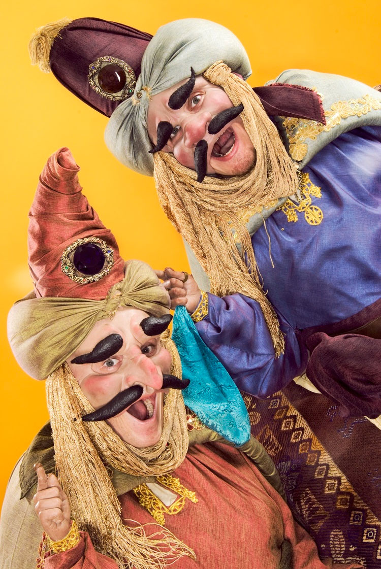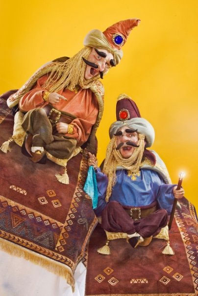 From across the desert sands come legendary storytellers & men of mystery Ruby Murray and Baba Ganush, on their magical flying carpets. Played in the romantic style of Victorian men on their magnificent flying machines, mixed with the slap-stick comedy of a Bernie Clifton style ostrich illusion. These colourful, comic characters demonstrate powers of flight and levitation, enchanting all with their tall tales, terrible jokes and inept seductions.