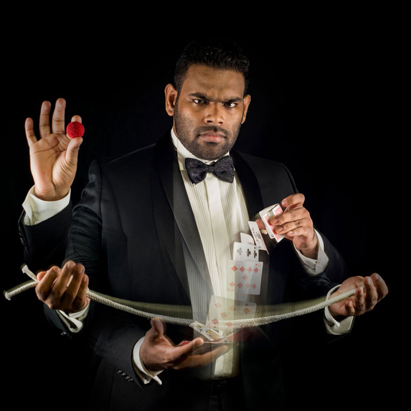 From small groups to large audiences, this act can be customised to roaming or stage performance with a large series of magic tricks
