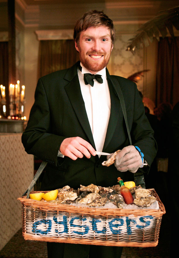 The boys don’t just wear kilts; they can also wear suits, tuxes and other dress depending on the theme of the event and on request from the client. They can also be accompanied by their oyster girls, who bring an air of elegance and glamour to your oyster eating experience.