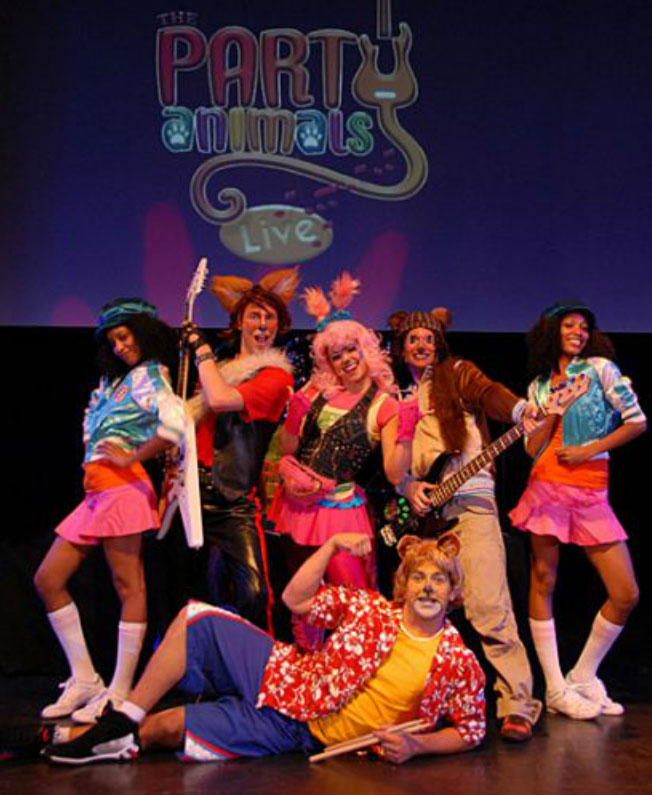 The Party Animals is an interactive Rock n Roll concert for kids. It’s four lovable characters: Kaiya the Kangaroo, Walter the Fox, Bandon the Bear and Lance the Lion invite the whole audience to come along on a musical journey as they prepare for Brandon the Bear’s surprise birthday party. Their witty banter and clever songs from their top selling album keeps the party rockin’ for both parent and child alike. The party starts the moment the first family arrives till the moment they leave with pre and post show entertainment provided by Stilt Walkers, Aerialists, Face Painters and Balloon Artists. Created by Mark Allen Ruegg, a well known children entertainer and baby wrangler in Los Angeles, CA (clients include Cindy Crawford, Steven Spielberg, Pamela Anderson, Disney, Baby Style and American Girl) and music written by Phil X and Ninette Terhart (Tommy Lee, Kelly Clarkson, Daughtry and Powder). This is a guaranteed hit with rockers of all ages!