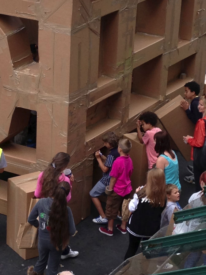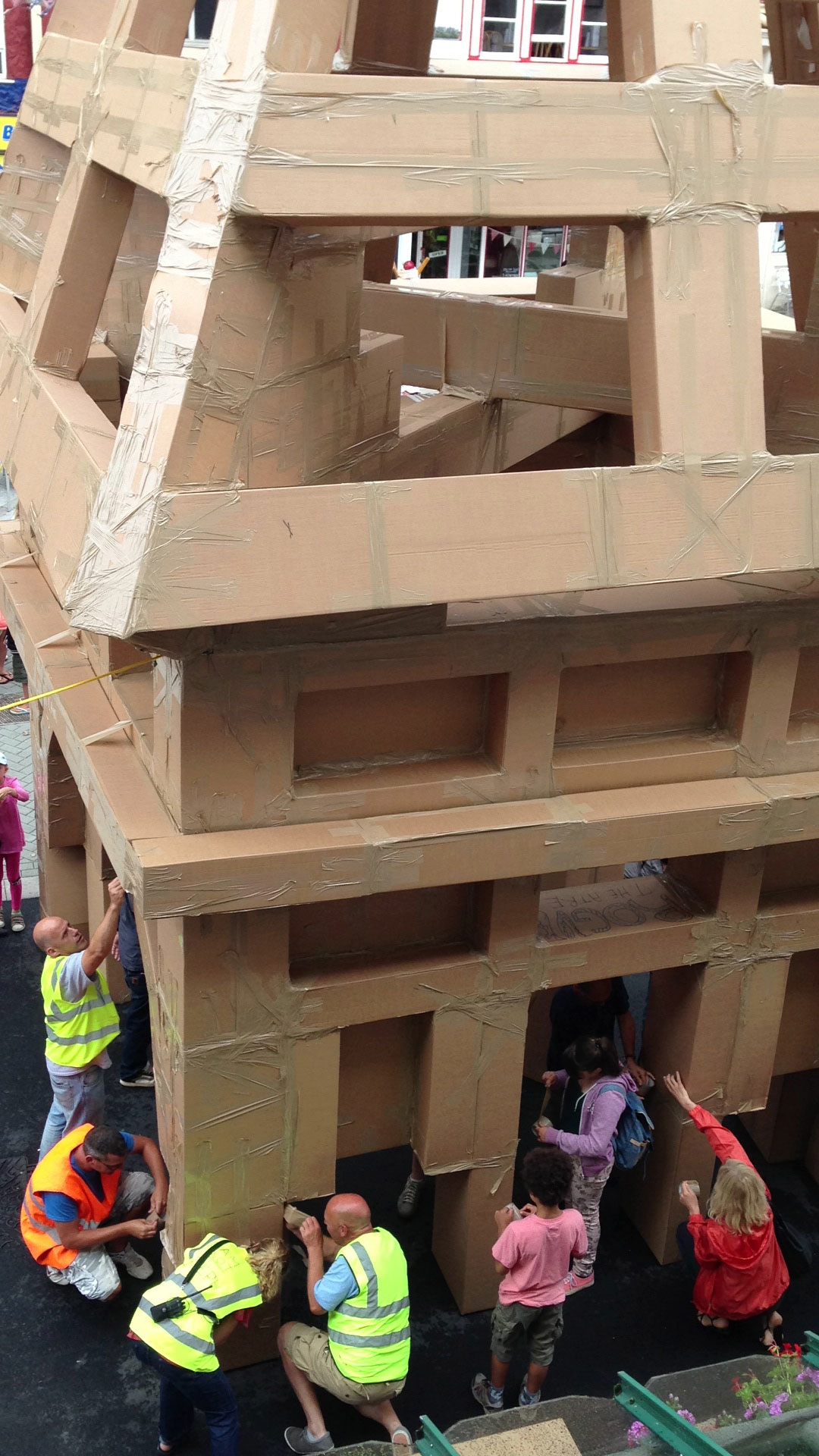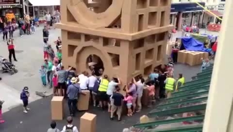 This is an amazing team building exercise that will not only bring people together, but really inspire them as well. An interactive art installation that recreates giant structures (landmarks, buildings, etc) using cardboard boxes and volunteers, once the tower is erected it is toppled to the delight of onlookers!