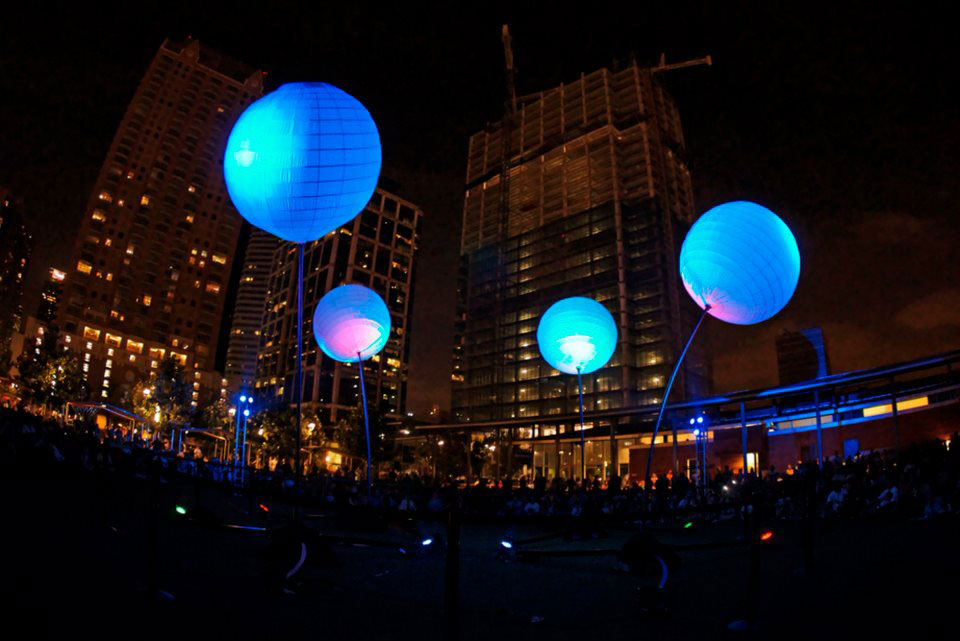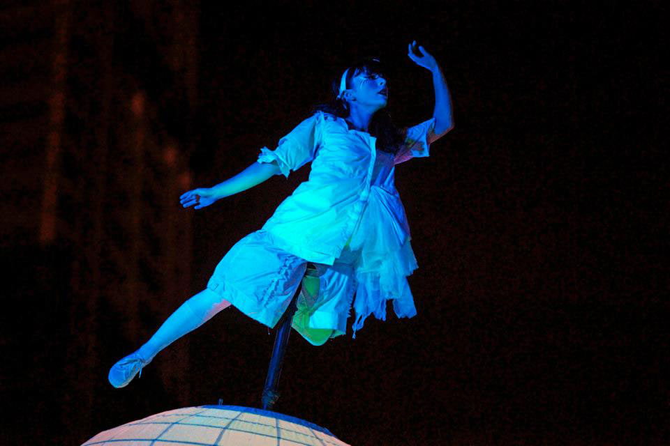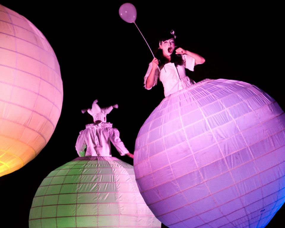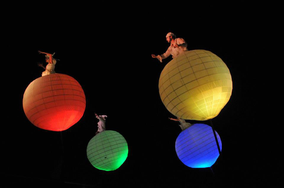 In this performance giant illuminated multi-coloured orbs balance atop 5 metre sway poles, each containing a character that awakes and gradually emerges to stand atop its sphere. This themed performance takes a look at creation, life and the universe and celebrates humanity’s existential relationship to our planet. Incredibly beautiful and thought provoking, this performance creates a stunning visual spectacle for evening and indoor shows and will add the WOW factor to your event.