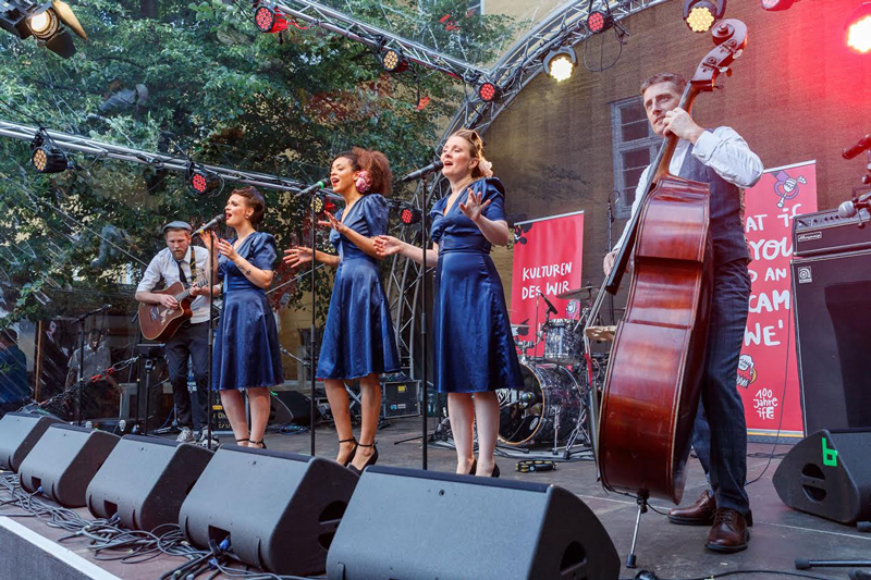 " ith their extravagant show in the 6er Combo, the ladies took the invited guests of a closed event as part of the Ludwigsburger Schlossfestspiele on a musical journey through time from the 20s to the present day: a successful mix of swing and pop hits with earwig potential. The audience was thrilled - standing ovations! "