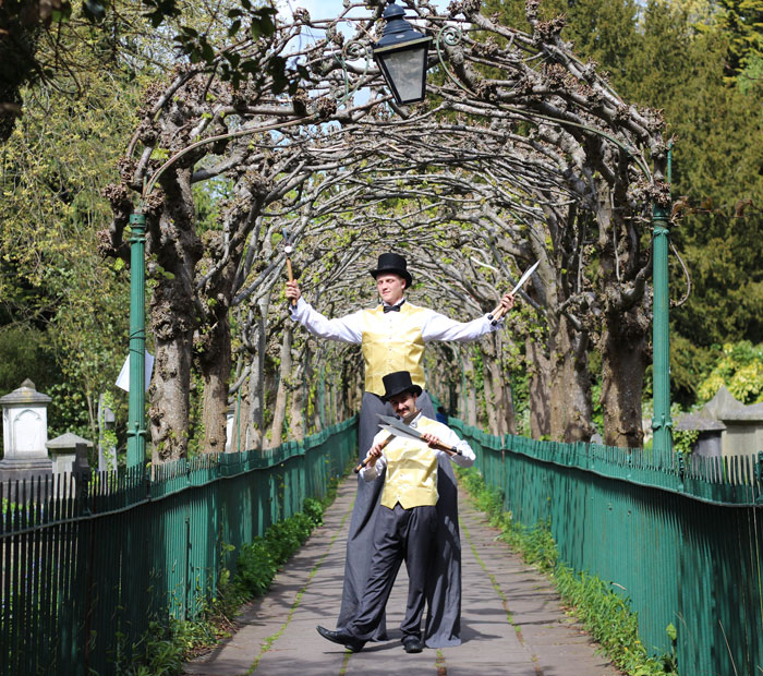 An interactive circus duo, Scarlett Entertainment UK's lively artists can perform perform magic tricks, contact juggling and sword skills. Your guests will love posing for photos with the walkabout characters.