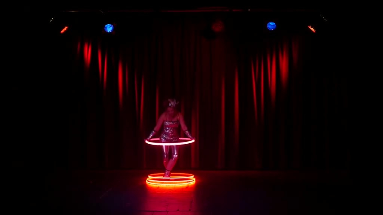 Perfect for themed shows and costume events, interactive or just for the visual senses using sparkling circus with LED glow, UV and fire hoops.