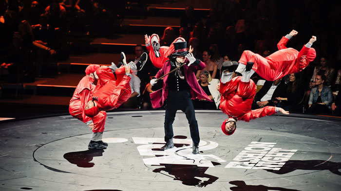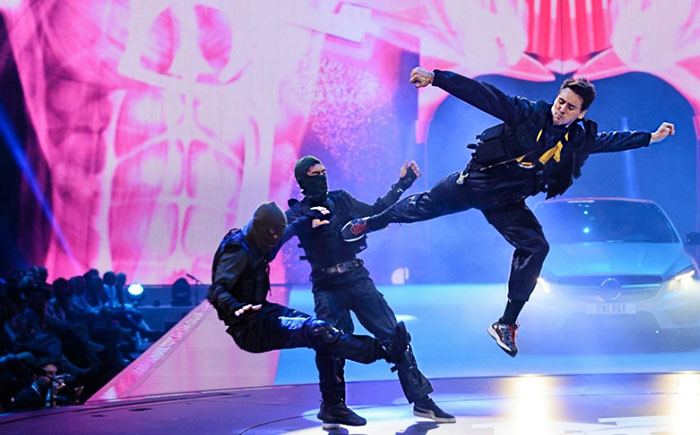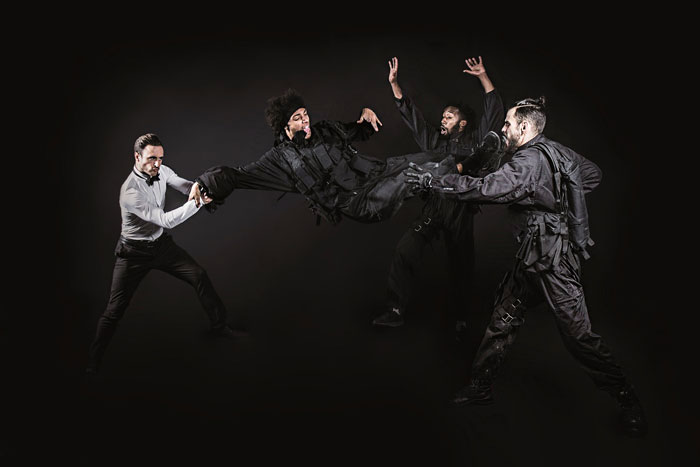 A team of stunt performers who combine theatrics, physical performance, martial arts, acrobatics and cinema stunts